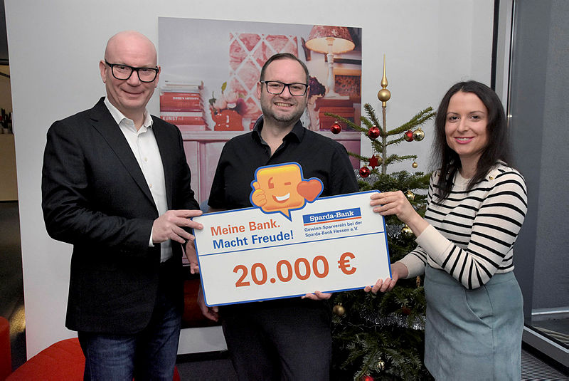 Einen Scheck über 20.000 Euro hat Michael Weidmann, Vorstandsvorsitzender der Sparda-Bank Hessen, in der Redaktion vorbeigebracht.